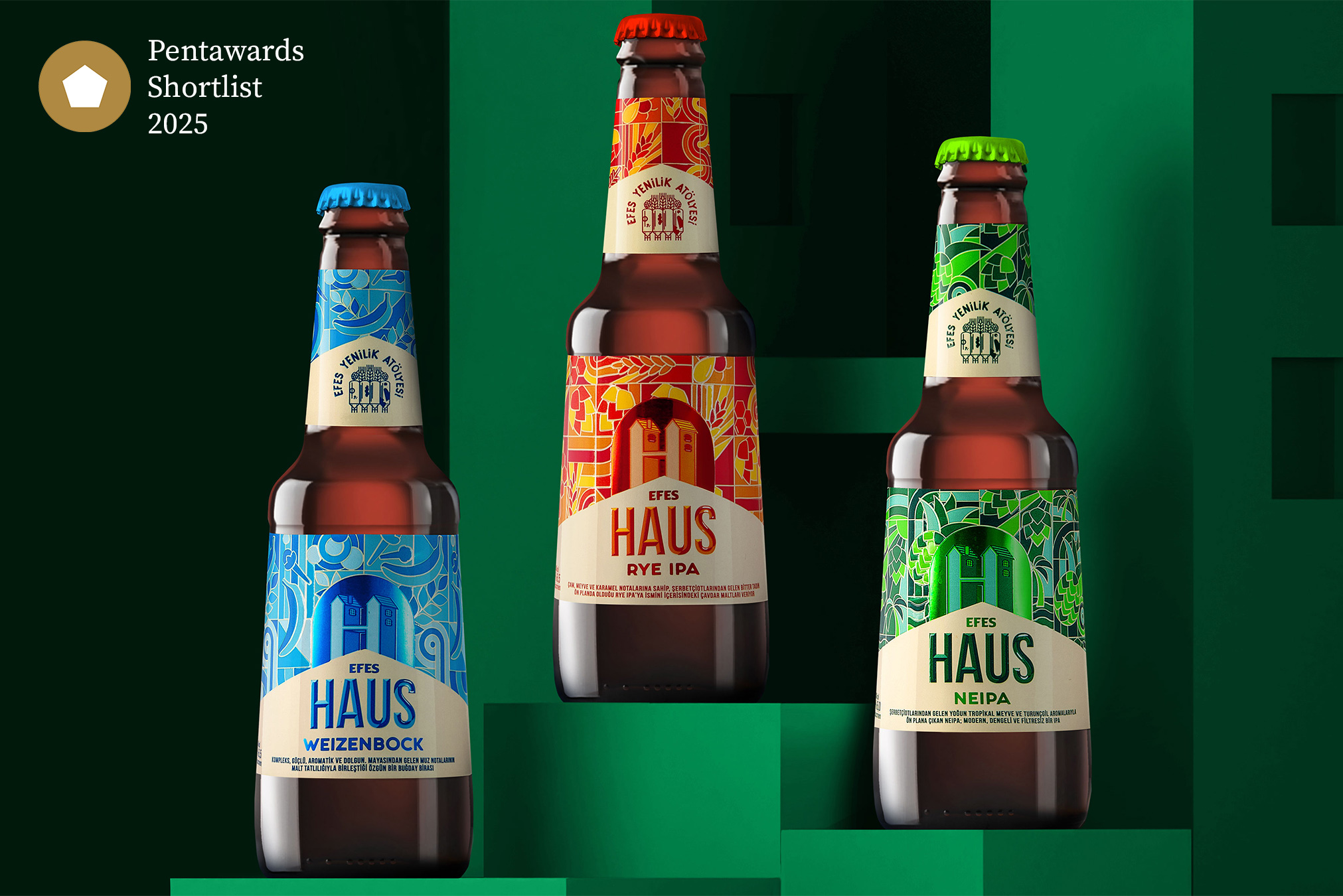 With our Efes Haus craft beer packaging designs, we’ve made it to the shortlist of Pentawards 2025, one of the world’s most prestigious packaging design competitions! In the designs of Efes Haus, competing in the Beer and Cider category, we drew inspiration from the aesthetics of stained glass to reflect the brand’s craft spirit. At the center, we placed a house illustration referencing both the shape of the ‘H’ in the brand name...
